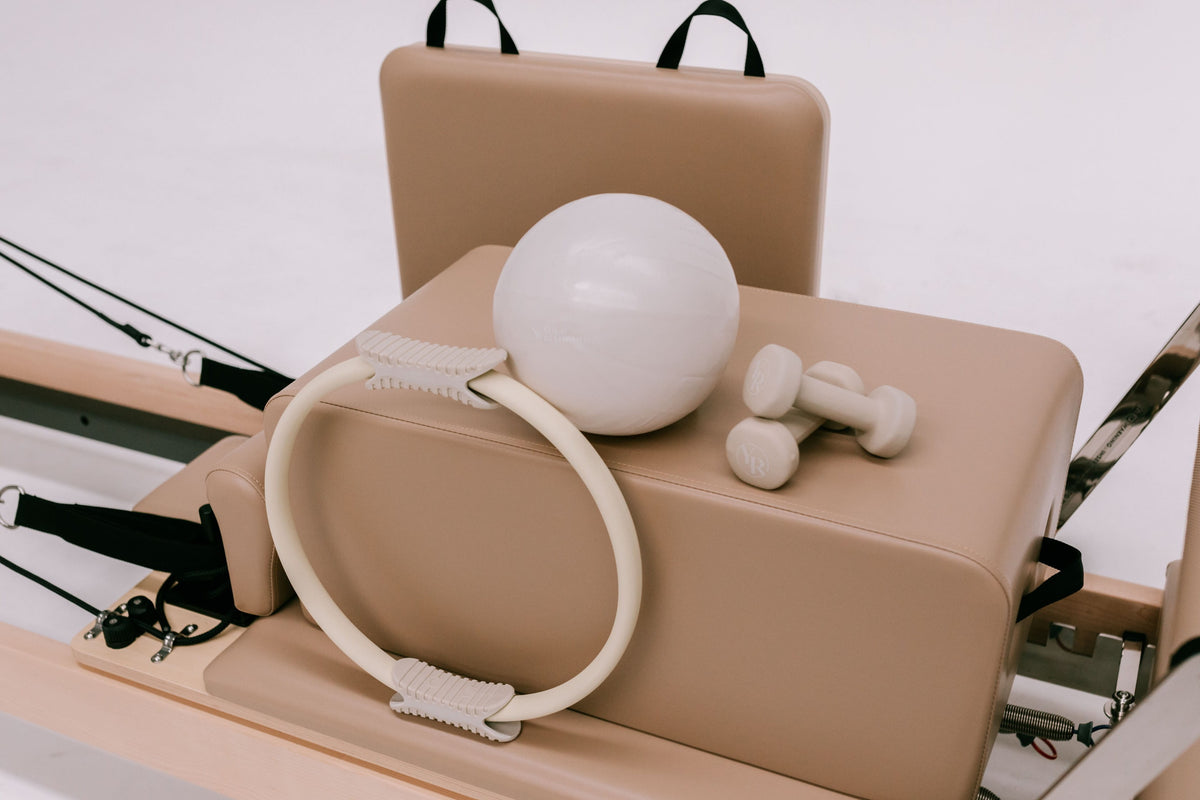 With every Reformer, receive a complimentary accessory kit including a Pilates ball, Pilates ring, 1kg hand weight set, Pilates box, and Pilates jumpboard. Everything you need to start delivering a complete and versatile Reformer Pilates experience.